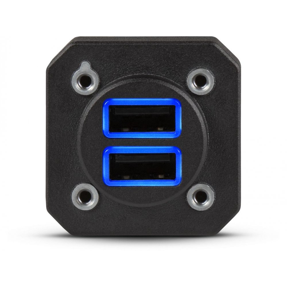 - Halo lighting around each USB port makes connections easy in dark conditions